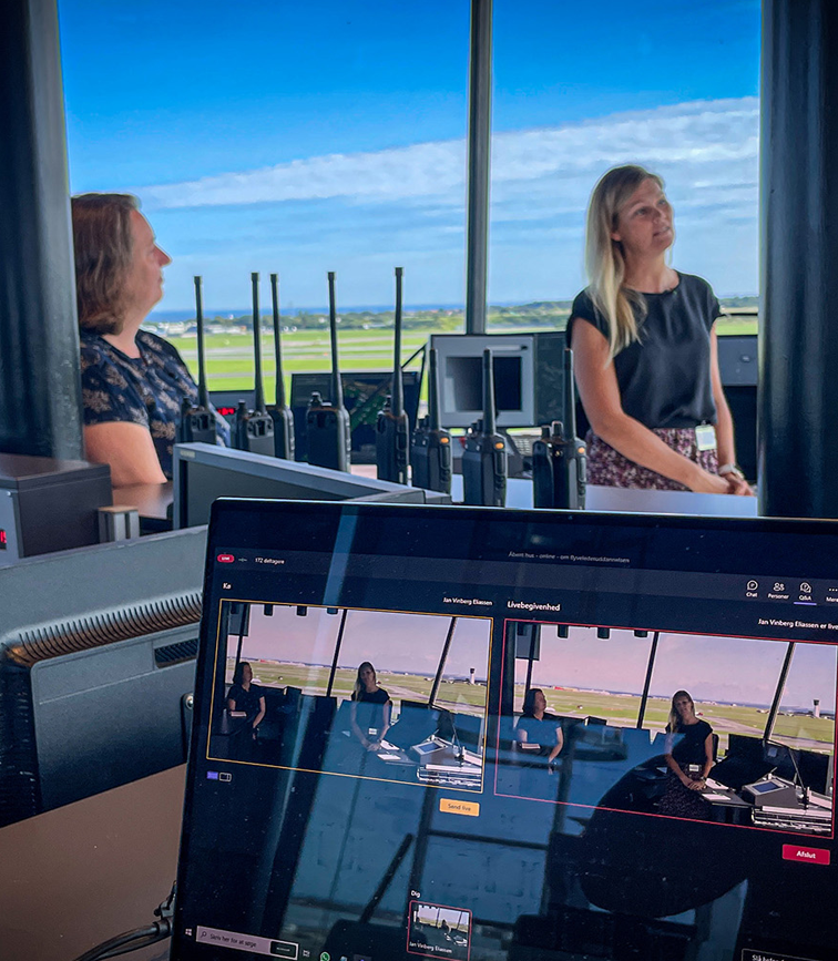 Det åbne hus blev streamet fra vores Contingency-Tower (vores gamle tårn) - og igen i år var det Marlene og Louise fra "Operations/Training" der stod for "underholdningen". I lighed med sidste år, var der mange spørgsmål både om dagligdagen som flyveleder, hvordan skoleforløbet ser ud, om man selv kan vælge ACC eller TWR/APP, om man kan skifte tjenestested når man er udchecket, hvor mange der ansøger og hvor mange vi ansætter?